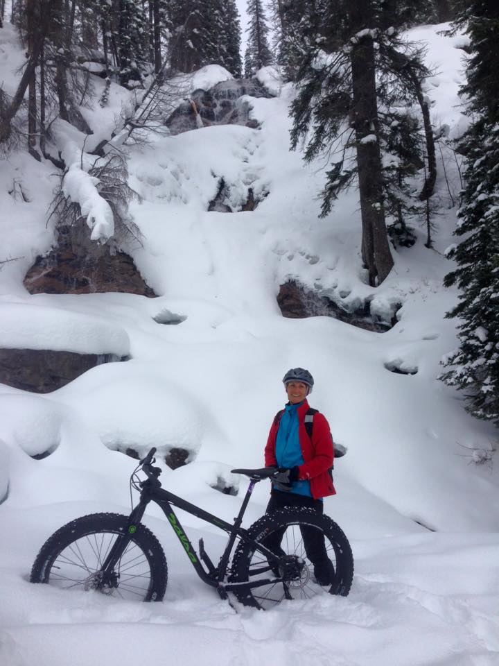 On Wednesday this week, Carol rode her fat bike up Skalkaho Road (a road that is closed to car traffic more than it is open) up to Skalkaho Falls. The next day at yoga