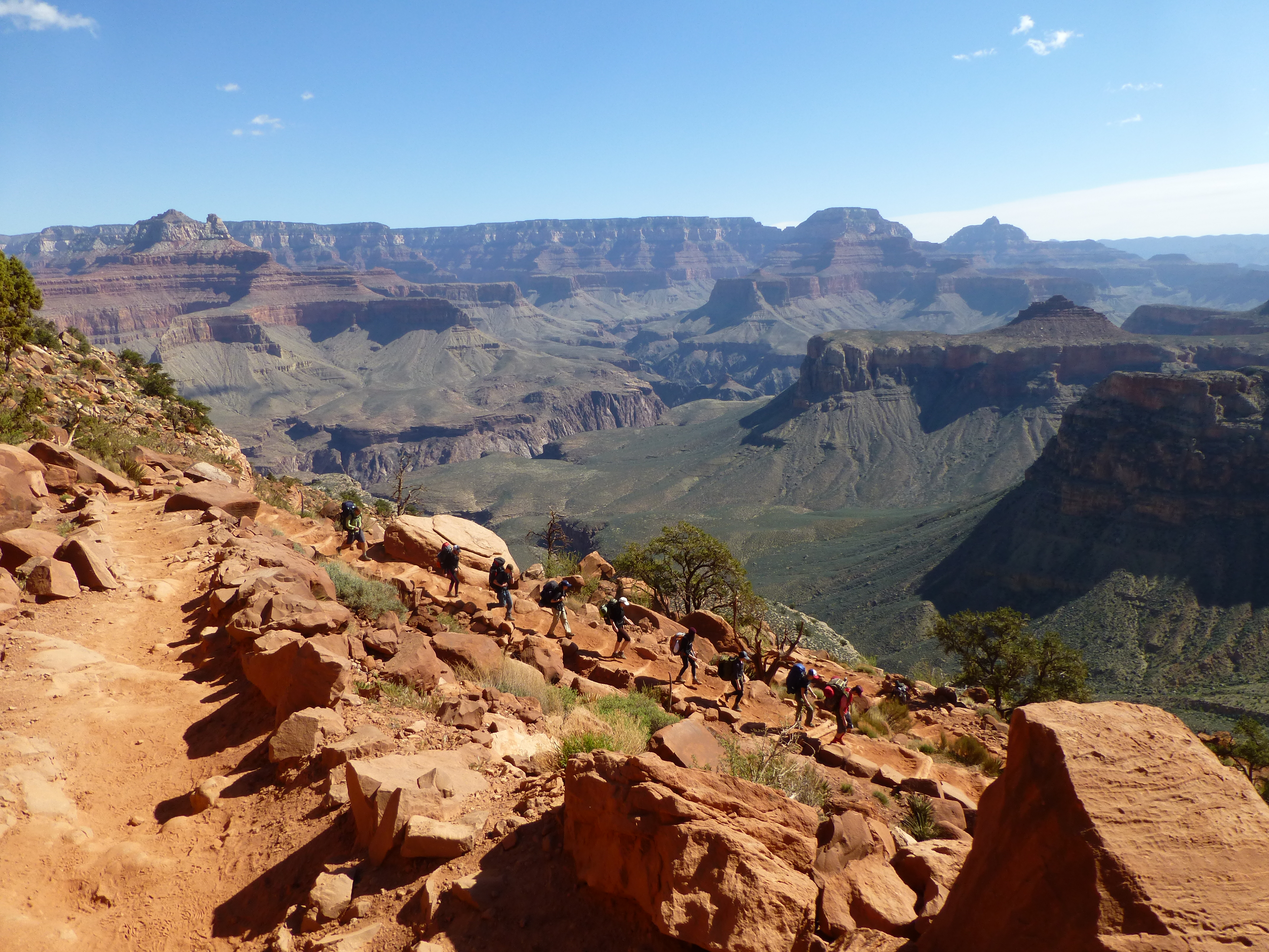 The morning started out gradual and the trail stayed just above the river and in the shade. We started climbing up the switchbacks in a narrow canyon and stayed in the shade most of the day.