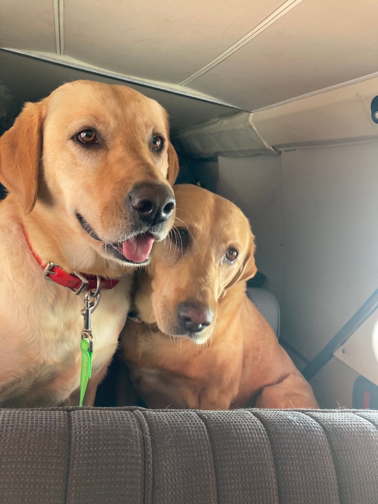 There was other gear on the runway waiting to be taken in, just gear, no people. All of our gear was weighed before being loaded onto the plane, then we helped load the other gear onto the planes as well. The pilot had also recorded our weights. “Dogs in the back seat” he said. We loaded them as if they were children. “Lisa next, then Heidi and Brett and finally, Scott and Shannon. Two planes. We put on ear protection and our seat belts. The dogs were unsure, but both yellow labs, Molly and Zoey, knew that they trusted their mom and dad without a doubt. Although, Zoey did spent most of the flight with her head in the floor. Molly watched out the window in awe.