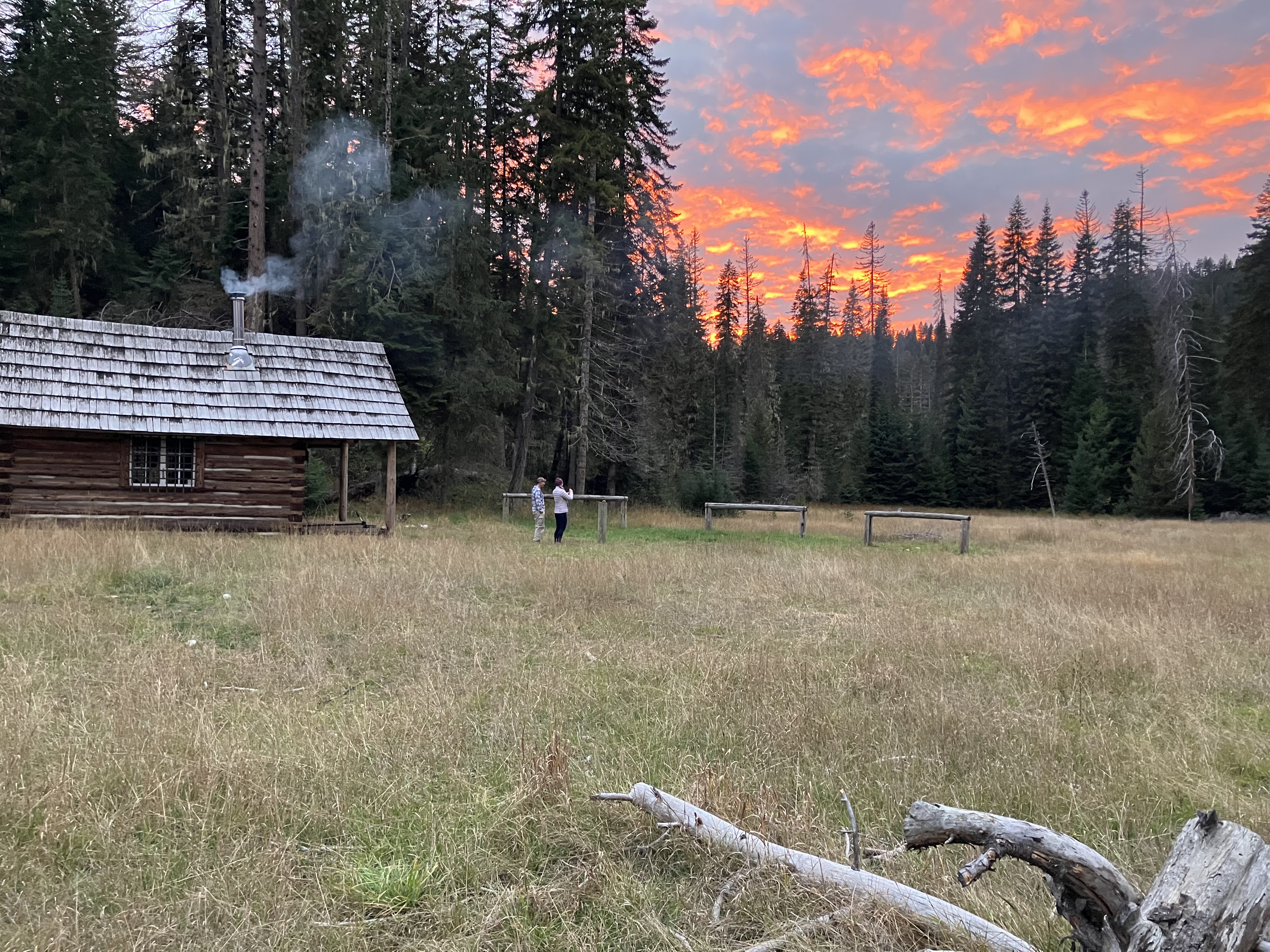 Heidi apologized before we all went to sleep, that she would have to open the big loud vault door to go pee. Nathan said he would have to do the same. I said we’d all just go pee together. No big deal. Gang toity Nathan declared. And so we did. Which was good because the stars were more phenomenal than the sunset. Here we were in the depths of the Selway Bitterroot Wilderness. Miles from any town or road. The stars. So many stars. Nathan and Heidi started pointing and naming planets. We were freezing and ran back into the warm cabin. Actually the cabin must have been 100 degrees, we stopped putting wood on the fire. I fell back to sleep listening to all of the critters scurrying on the porch and the roof hoping none could get into my backpack hanging on the wall.